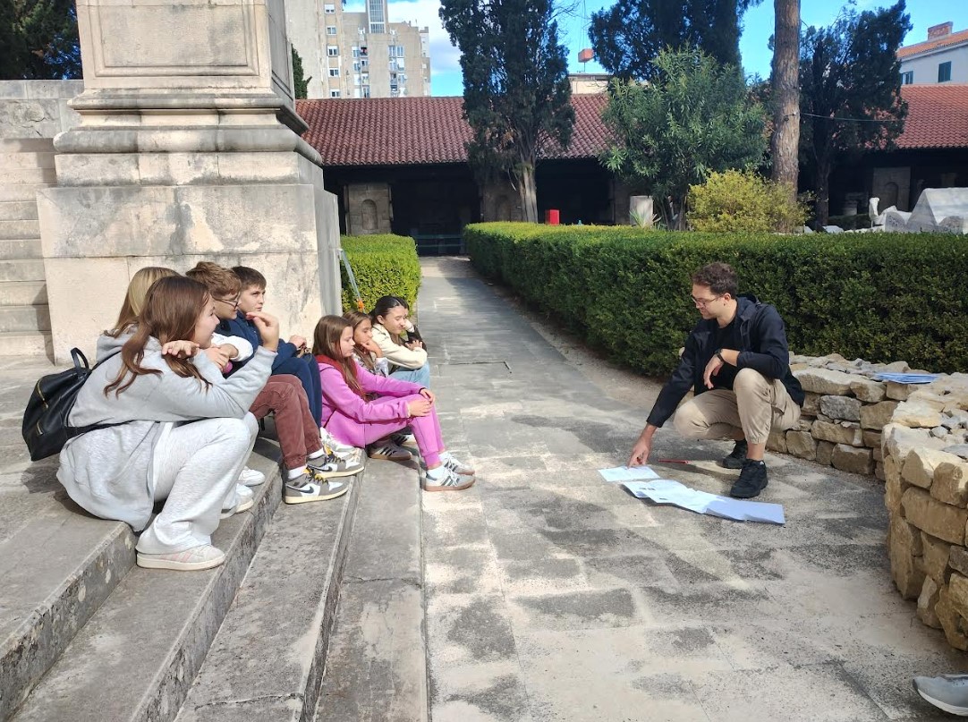 Dana 8. listopada 2025. članovi izvannastavnih grupa Mladi arheolozi i Mladi knjižničari, pod vodstvom nastavnika povijesti Ivana Careva i školskog knjižničara Miše Sučevića, posjetili su Arheološki muzej u Splitu. Povod posjeti bila je izložba „Meduzin pogled“, koja se sastoji od jedanaest golemih artefakata, koji zajedno teže više od 36 tona. Izložba je rezultat suradnje Arheološkog muzeja u Splitu i Umjetničke akademije u Splitu. Radi se o konzervatorsko-restauratorskoj izložbi koja je predstavljena kroz arheološku dimenziju. Naši su učenici pogledali vrlo zanimljive artefakte, zapravo arheološke spomenike nadograđene konzervatorskih zahvatima. Potom su imali malu školu arheologije i pitanja kroz koja ih je vodio muzejski pedagog Luka Donadini. Tijekom ove posjete učenici su naučili puno toga novoga, te su vidjeli brojne arheološke spomenike. Oduševila ih je atmosfera i ljepota Arheološkog muzeja u Splitu u kojem se čuvaju mnogi arheološki nalazi iz različitih povijesnih razdoblja.